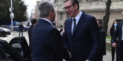 Vučić i Nehamer sastali su se u zgradi Predsedništva, a predsednik Srbije je svog gosta srdačno dočekao ispred zdanja na Andrićevom vencu.