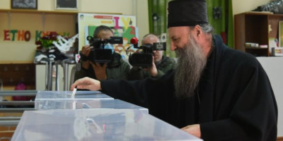 Brojni građani koji su se zatekli na biračkom mestu prilazili su patrijarhu za blagoslov.