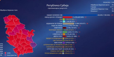Kada je reč o manjinama, Savez vojvođanskih Mađara za sada ima 1,59 odsto, Muftijin amanet 0,93 odsto, Zajedno za Vojvodnu 0,64 odsto, SDA Sandžaka 0,55 odsto, Alternativa za promene 0,09 odsto, Koalicija Albanaca 0,26 odsto, Romska partija 0,17 odsto i Ruski manjinski savez 0,25 odsto.