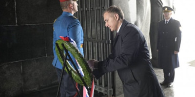 Ministar Stefanović je venac položio uz intoniranje himne Republike Srbije i svečani stroj Garde Vojske Srbije.
