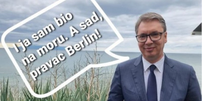 Vučić je objavio fotografiju sa svog instagram nalogu, gde je šaljivo poručio "i ja sam bio na moru, a sad pravac Berlin".