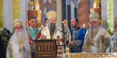 - Radujmo se i veselimo se, radujmo se braćo i sestre jer se danas raduje punoća crkve, nebo i zemlja, svi sveti se raduju, svetitelj Sava i svi koji su zasađeni u njegovom korenu - rekao je Porfirije u Hramu Svetog Save u Beogradu, gde je služio liturgiju pomirenja zajedno sa arhiepiskopom ohridskim i makedonskim Stefanom i arhijerejima obe crkve.