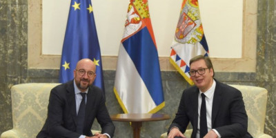 Predsednik Srbije Aleksandar Vučić sastao se sa predsednikom Evropskog saveta Šarl Mišelom, a nakon sastanka komentarisali su globalnu situaciju i krizu u svetu