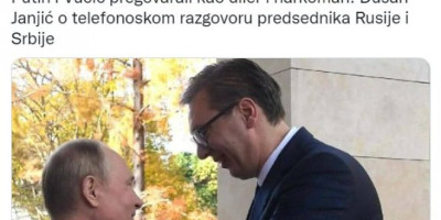 Portal Danas objavio je komentar osnivača Foruma za etničke odnose Dušana Janjića na današnji razgovor Vučića i Putina, a vest naslovio sa Putin i Vučić pregovarali kao diler i narkoman.