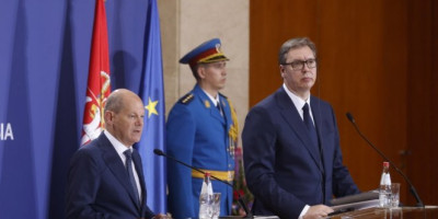 Predsednik Srbije Aleksandar Vučić ugostio je nemačkog kancelara Olafa Šolca u Palati Srbija, a nakon razgovora dvojica zvaničnika obratila su se javnosti