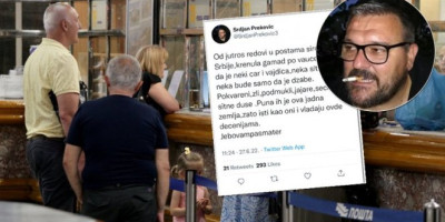 Tako je izvesni Srđan Preković napisao na svom Tviter nalogu sramnu objavu u kojoj vređa sve one koji su krenuli u pošte po vaučere za odmor u Srbiji.