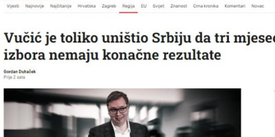Polomiše se mediji u Hrvatskoj da iskažu zabrinutost što u Srbiji još nisu proglašeni konačni rezultati parlamentarnih izbora, a za to, a koga bi drugo, optužuju predsednika Aleksandra Vučića.