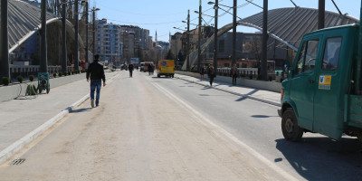U južnom delu Kosovske Mitrovice, odmah posle Glavnog mosta koji razdvaja severnu i južnu Kosovsku Mitrovicu, nalazi se oko 200 okupljenih Albanaca.
