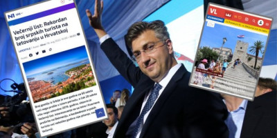 Kako bi bio siguran da će uspeti u svojoj nameri izvrtanja realnosti, ustaša Plenković je obezbedio i dodatno pojačanje. Kao po starom običaju, Šolakov medij N1 je sve to brže-bolje promovisao na svom portalu - Večernji list: Rekordan broj srpskih turista na letovanju u Hrvatskoj.