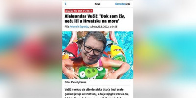 Predsednik Srbije Aleksandar Vučić rekao je da više desetina hiljada ljudi svake godine letuje u Hrvatskoj, a da je njegov lični stav da "dok je živ" neće ići tamo na more i objasnio da je izgleda njegov najveći greh što ne želi da letuje u Hrvatskoj, već želi da poseti Jasenovac i oda počast žrtvama, što je hrvatski portal na najbedniji način ismejao pokušavajući na taj način da pobegne od suštine onoga što je Vučić ustašama sasuo u lice.