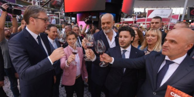 Na prvom sajmu "Vinska vizija Otvorenog Balkana" predsednik Srbije Aleksandar Vučić sa premijerima i premijera Albanije, Severne Makedonije i Crne Gore, Edijem Ramom, Dimitrom Kovačevskim i Dritanom Abazovićem obišao je brojne izlagače