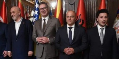 - Predsednik Republike Srbije Aleksandar Vučić domaćin je večere organizovane za goste Samita u okviru inicijative Otvoreni Balkan - piše na Instagram profilu "buducnostsrbijeav".
