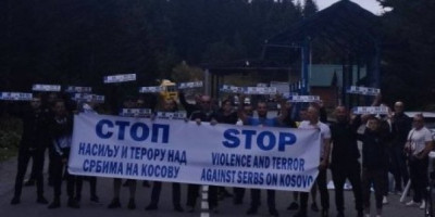 Okupljeni su nosili transparente "Stop nasilju i teroru nad Srbima na Kosovu", "Ujedinjeni u borbi protiv terorizma"...