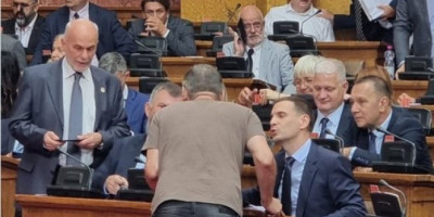 Opozicioni poslanici Aleksandar Jovanović Ćuta i Miloš Jovanović posvađali su se jutros na početku posebne sednice Skupštine Srbije o Kosovu i Metohiji oko toga ko će gde da sedi. I sve to u prisustvu predsednika Aleksandra Vučića, predstavnika diplomatskog kora i Srba sa KiM