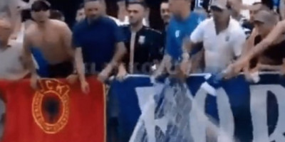 Na utakmici kosovske superlige koja je večeras odigrana u sali "Šani Nuši" navijači su razvili transparent "Za sever spremni, Mitrovica je Albanija", nakon čega su zapalili srpsku trobojku.