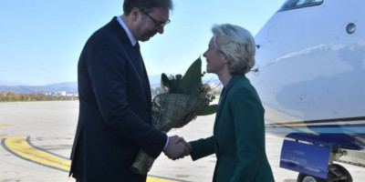Predsednik Republike Srbije Aleksandar Vučić dočekao je predsednicu Evropske komisije Ursulu fon der Lajen na niškom aerodromu „Konstantin Veliki“ - napisao je predsednik Srbije na Instagamu.