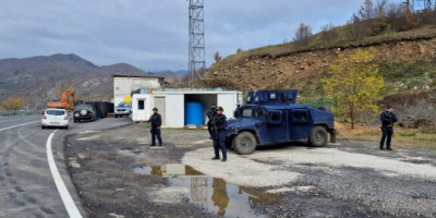 Iza betonskih barikada nalazi se i specijalizovano vozilo za razbijanje barikada.