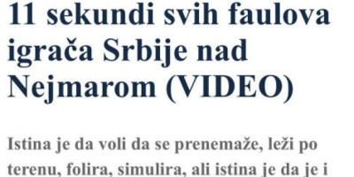 - Istina je da voli da se prenemaže, leži po terenu, folira, simulira, ali istina je da je i Nejmar u utakmici protiv Srbje bio pod stalnim oštrim faulovima naših igrača. Pokazuje to i snimak od 11 sekundi gde se vidi kako su ga Orlovi slali na zemlju - stoji u sramnom teksu tajkunskih medija, samo jednom u nizu na koje smo već i navikli...