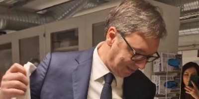 Oni su Vučiću poželeli dobrodošlicu a jedan od njih mu je poklonio kutiju sa kolačima od bibera.