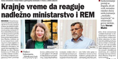 Nakon pretnji na društvenim mrežama voditeljki Dnevnika na tajkunskoj televiziji TV Nova S Jeleni Obućini, u tajkunskom listu Danas osvanuo je tekst sa naslovom "Krajnje je vreme da reaguje nadležno ministarstvo i REM", u kome se nadležni pozivaju da sankcionišu provladine medije, a ne da sankcionišu budalu koja je odgovorna za pretnje.