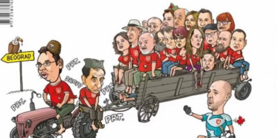 Ustaško glasilo "Hrvatski tjednik" objavilo je sramnu karikaturu naše Vlade uz poruku na ćirilici "Srećan put, traktoristi!" aludirajući na zločinačku akciju "Oluja" u kojoj je 1995. godine proterano preko 250.00 Srba sa svojih vekovnih ognjišta od strane ustaške vojske.