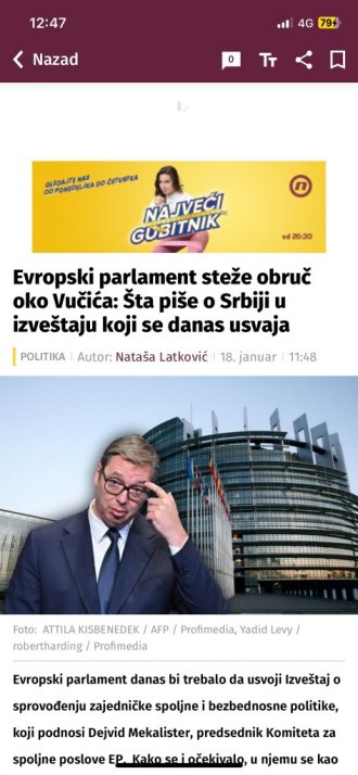 Naime, opoziciona Nova je objavila vest pod naslovom "Evropski parlament steže obruč oko Vučića: Šta piše o Srbiji u izveštaju koji se danas usvaja" i time praktično priželjkuje propast sopstvene zemlje.
