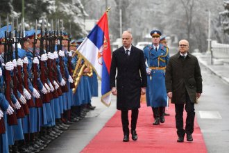 Posle svečanog dočeka ispred stroja Garde Vojske Srbije, usledili su tet-a-tet razgovori dva ministra i sastanak delegacija.