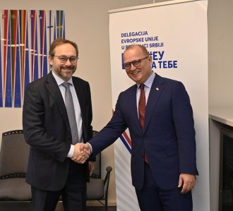 Ministar građevinarstva, saobraćaja i infrastrukture Goran Vesić i šef Delegacije Evropske unije u Srbiji Emanuele Žiofre razgovarali su danas o usaglašavanju zakona iz oblasti transporta i infarstrukture sa pravnim tekovinama Evropske unije