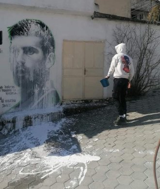 Muralu Novaka Đokovića prefarbanom noćas u Orahovcu, vraćen je prvobitni izgled, akcijom preostalih Srba u tom gradu