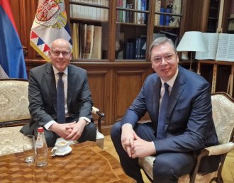 - Partnerski odnosi sa Nemačkom su od najveće važnosti za Srbiju. Ekonomska saradnja i evropski put Srbije u žiži razgovora sa Peterom Bajerom, članom Bundestaga iz redova CDU - objavio je Vučić na Instagramu "budućnostsrbijeav".
