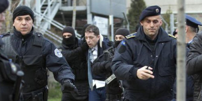 Brzim hodom su ga prebacili iz automobila u zgradu policije, a njegovo sprovođenje u pritvor pratilo je više stotina Albanaca koji su uzvikivali pogrdne reči na srpskom jeziku.