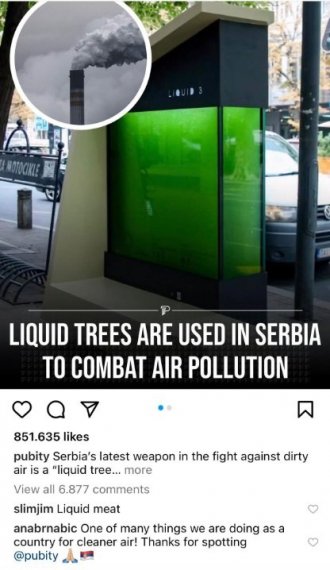 Na društvenoj mreži Instagram, britnski news portal koji ima 32 miliona pratilaca okačio je post o vodenom drvetu kod opštine Stari Grad koje se bori protiv zagađenja.
