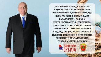 "Dragi pravoslavci, danas na najveći hrišćanski praznik Vaskrs želim da vaše porodice budu radosne i vesele, da se rađaju deca i da nas u budućnosti okupljaju venčanja, krštenja i slave uz poštovanje pravoslavlja. Hristos Vaskrse!", napisao je Palma.