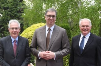 - Primio sam danas u Beogradu američke ambasadore u Srbiji i BiH, Kristofera Hila i Majkla Marfija. Imali smo sadržajan i otvoren razgovor o svim važnim regionalnim pitanjima. Ukazao sam na činjenicu da politička i ekonomska saradnja na Balkanu predstavljaju najvažniji uslov za napredak svih naroda - napisao je Vučić na svom Instagram profilu "buducnostsrbijeav" i dodao: