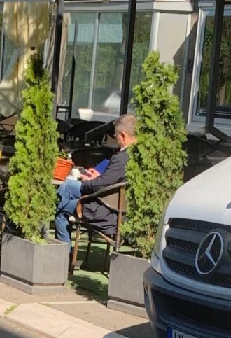 Naime, Jeremić već od 10 sati ujutru ispija kafu na Vračaru uz skupe tompuse, dok "gine" za Kosovo uz sunčanje.
