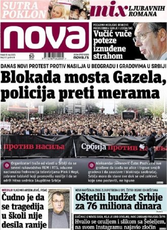 Kao centralnu priču objavljuju naslov da na plan ekstremističke opozicije da blokira most Gazela, "policija preti merama"!