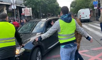 Pripadnici dela opozicije isprečili su se na raskrsnici kod Ulice kralja Milana, blokirajući saobraćaj vozaču i zamalo izazivajući saobraćajnu nesreću.