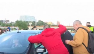 Predvodnik i organizator protesta, Srđan Milivojević, je u jednom trenutku video da je među zaustavljenim automobilima i jedno vozilo slovenačkih registarskih tablica, pa je pohitao da im se izvini što ne mogu da prođu.