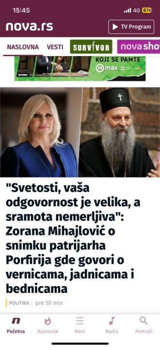 Sramni komentar bivše ministarke Zorane Mihajlović u kojem napada srpskog patrijarha Porfirija preneli su tajkunski mediji.