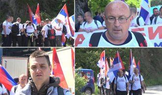 - Okupili smo se da damo podršku predsedniku Vučiću 26.maja na mitingu. 11 nas iz Kosovoske Mitrovice je krenulo peške, 12 iz Leposavića. Nadam se da ćemo proći sve prepreke i vratiti se u zdravlju i dočekati miting u zdravlju. Krenuli smo peške za opstanak srpskog naroda na KiM - rekao je Kostić Tomislav iz Kosovske Mitrovice.