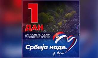 - Pozivamo sve građane Srbije da 26. maja, dan uoči velikih i važnih odluka za Srbiju pozovemo ljude u odbranu slobodarskih, demokratskih vrednosti naše Srbije da dođu na najveći skup ikada održan u Srbiji. Održaćemo ga ispred Narodne skupštine ili na Trgu Republike u Beogradu 26. u poslepodnevnim satima. Pozivamo sve ljude koji žele dobro Srbiji, koji žele da sačuvamo Srbiju, da je odbranimo od onih koji bi da je uruše i da je unište po svaku cenu i da pokažemo na miran, dostojanstven, ponosan i demokratski način da Srbiju niko ne može da oduzme njenim građanima. Živela Srbija, videćemo se 26. maja na platou ispred Narodne skupštine - kazao je Vučić