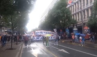 Oni su krenuli kroz ulicu Kralja Milana, a čak i kiša koja lije im ne predstavlja problem.