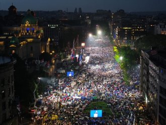 Ispred platoa Narodne Skupštine okupilo se više od 200.000 građana koji su došli iz svih krajeva Srbije kako bi pružili podršku predsedniku Srbije Aleksandru Vučiću.