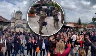 Okupljeni srpski narod u glas peva "Ovo je Srbija", te skandira "Kosovo je srce Srbije" čime jasno daju do znanja da neće dozboliti nelegalno zauzimanje opštine od strane Kurtijevih "novoizabranih" gradonačelnika.