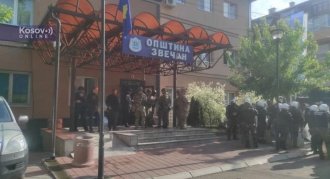 Novinarka Kosova onlajn je pre toga ušla u pres salu opštinske zgrade, uz dopuštenje pripadnika Kfora, zajedno sa grupom novinara albanskih medija.