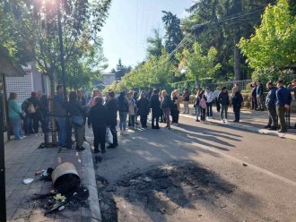 Veliki broj građana i jutros se okupio ispred zgrade opštine Leposavić, a novoizabrani Kurtijev gradonačelnik te opštine Ljuljzim Hetemi noć je proveo u zgradi.