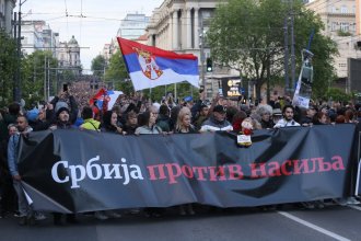 Opozicionari su na prvom skupu nosili transparent "Srbija protiv nasilja".