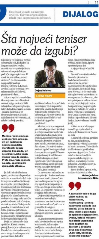 Dejan Hristov je za antisrpski list 'Danas' napisao kolumnu u kojoj je na najgore moguće načine isprozivao Đokovića.