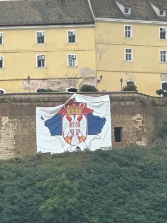 Kako se nezvanično saznaje S.Đ. učesnik protesta sa nekoliko svojih istomišljenika pokušava već par noći da skine zastavu na kojoj se nalazi grb Republike Srbije i mapa Kosova i Metohije.