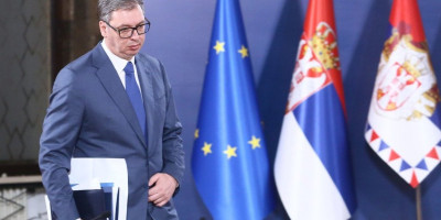 Predsednik Srbije Aleksandar Vučić obratio se javnosti nakon sastanka sa predsednicima vlada Kraljevine Holandije Marka Rutea i Velikog Vojvodstva Luksemburg Gzavijea Betela, u Palati "Srbija".